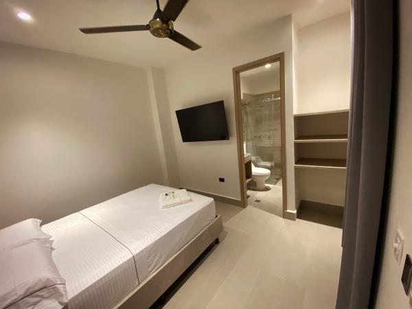 Todas nuestras habitaciones están diseñadas para ofrecerteuna estancia cómoda, cuenta con Wifi, baño privado, tv pantalla plana, ropa de cama, y toallas.